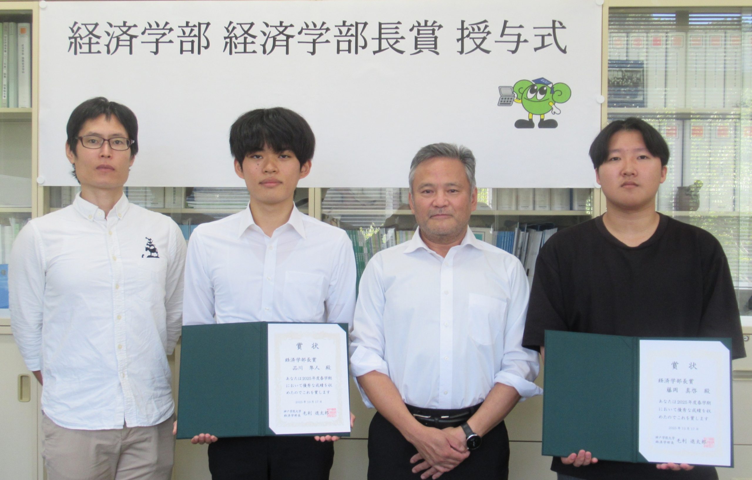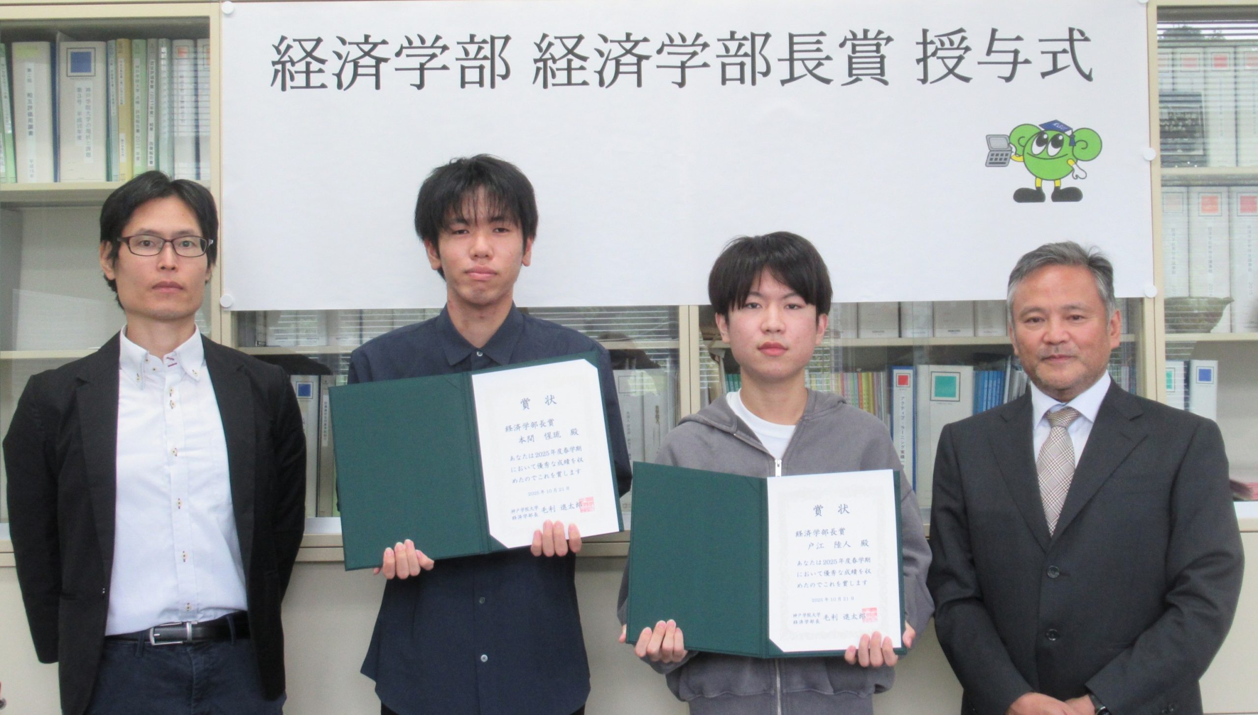 経済学部では、学生諸君の地道な勉学の努力を讃える目的で、春・秋の2学期の各セメスターにおいて優秀な学業成績を収めた者に「経済学部長賞」を授与しています。